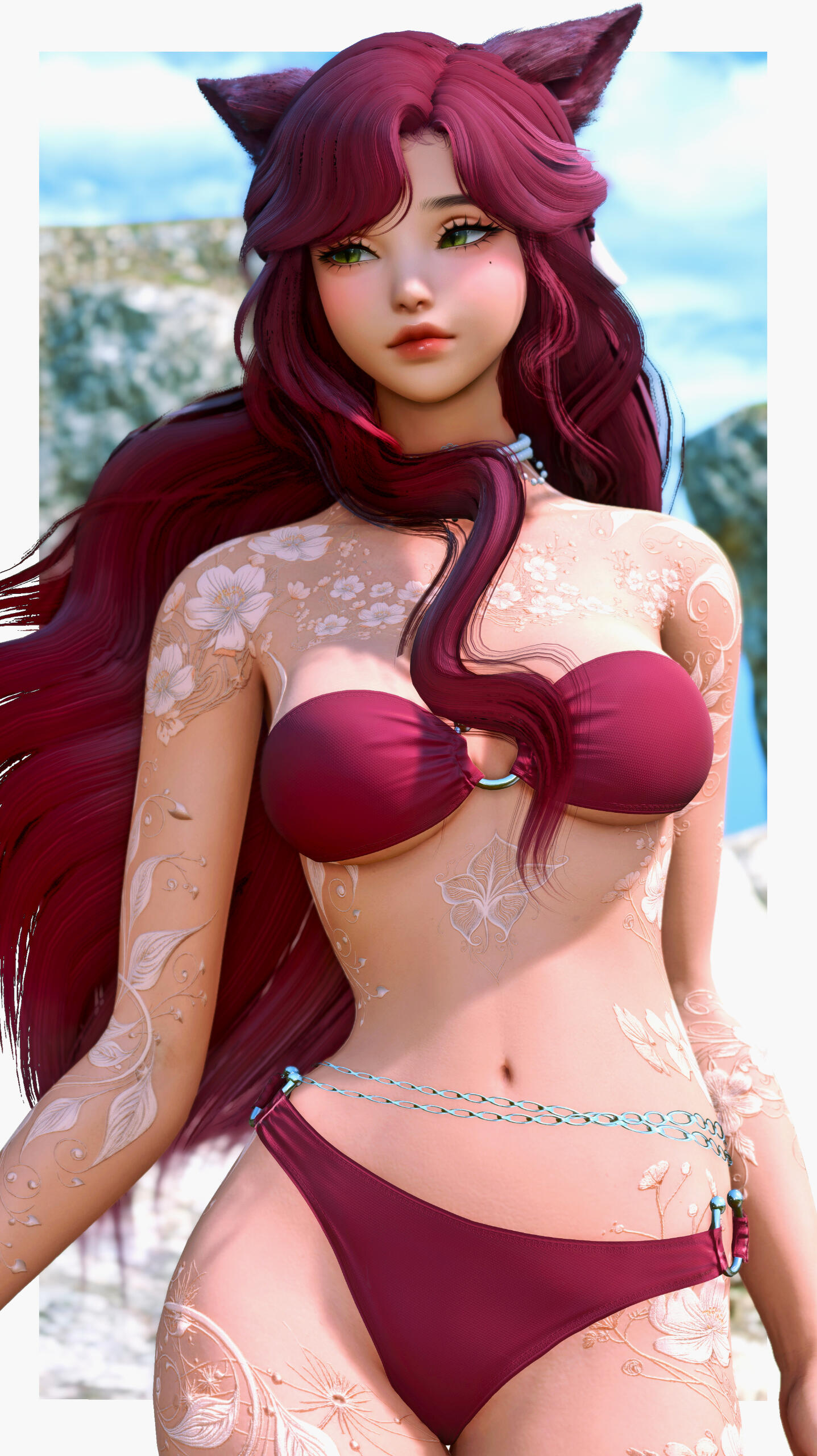 hook two. nature's wanderer -- athena is enchanted by the allure of eorzea's natural landscapes & seeks kindred spirits who share her deep appreciation for the outdoors, whether they are adventurous souls embarking on daring quests or devoted botanists who celebrate the intricate beauty of flora and fauna.